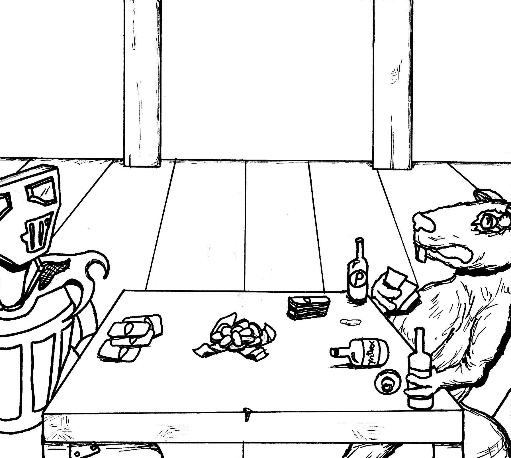 So, both Geoff and I have taken ill simultaneously. Usually, when one of us gets hit with some sickly bit of something, the other is around to push the episodes through. This is the first time we’ve both been out, though, so we’ve had to shove the new episodes into next week. In the meantime, here are the rough inks from those episodes to wet your collective whistles! – The Count